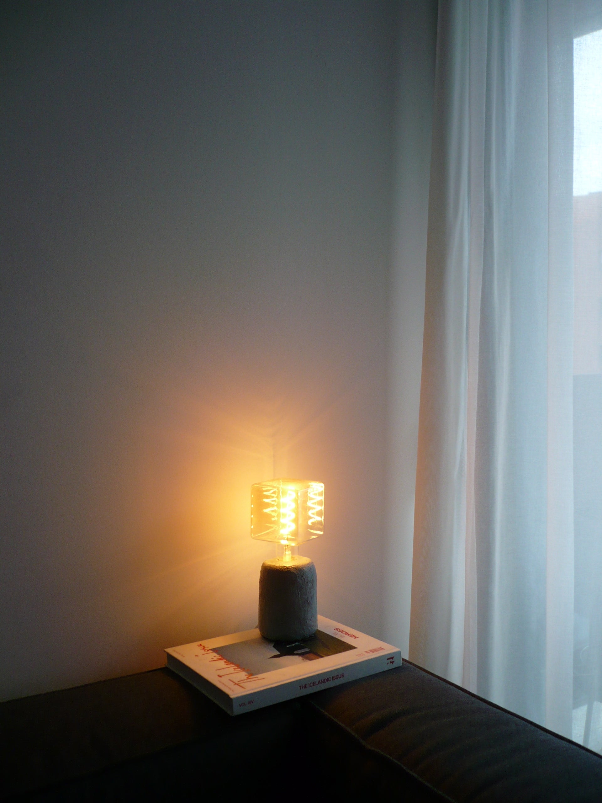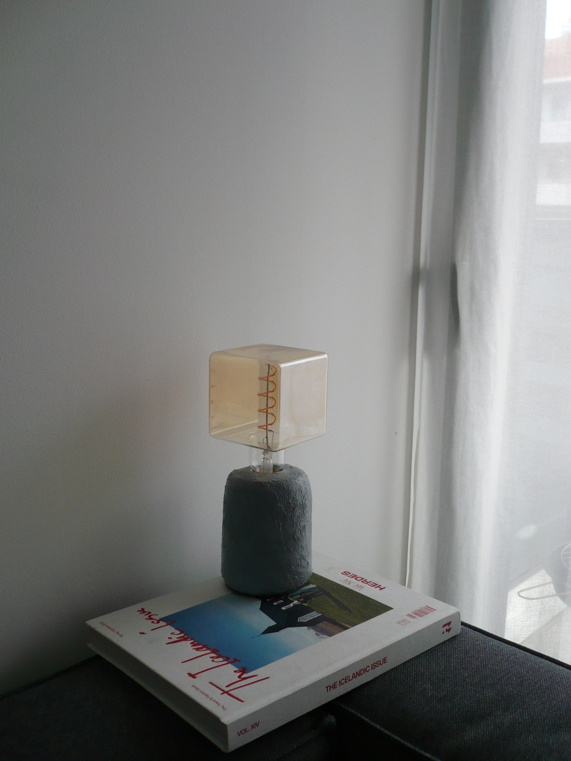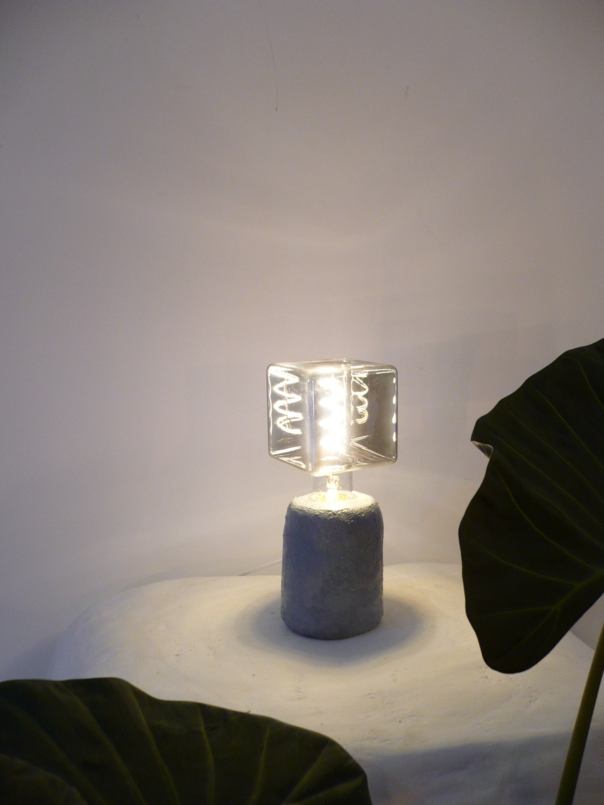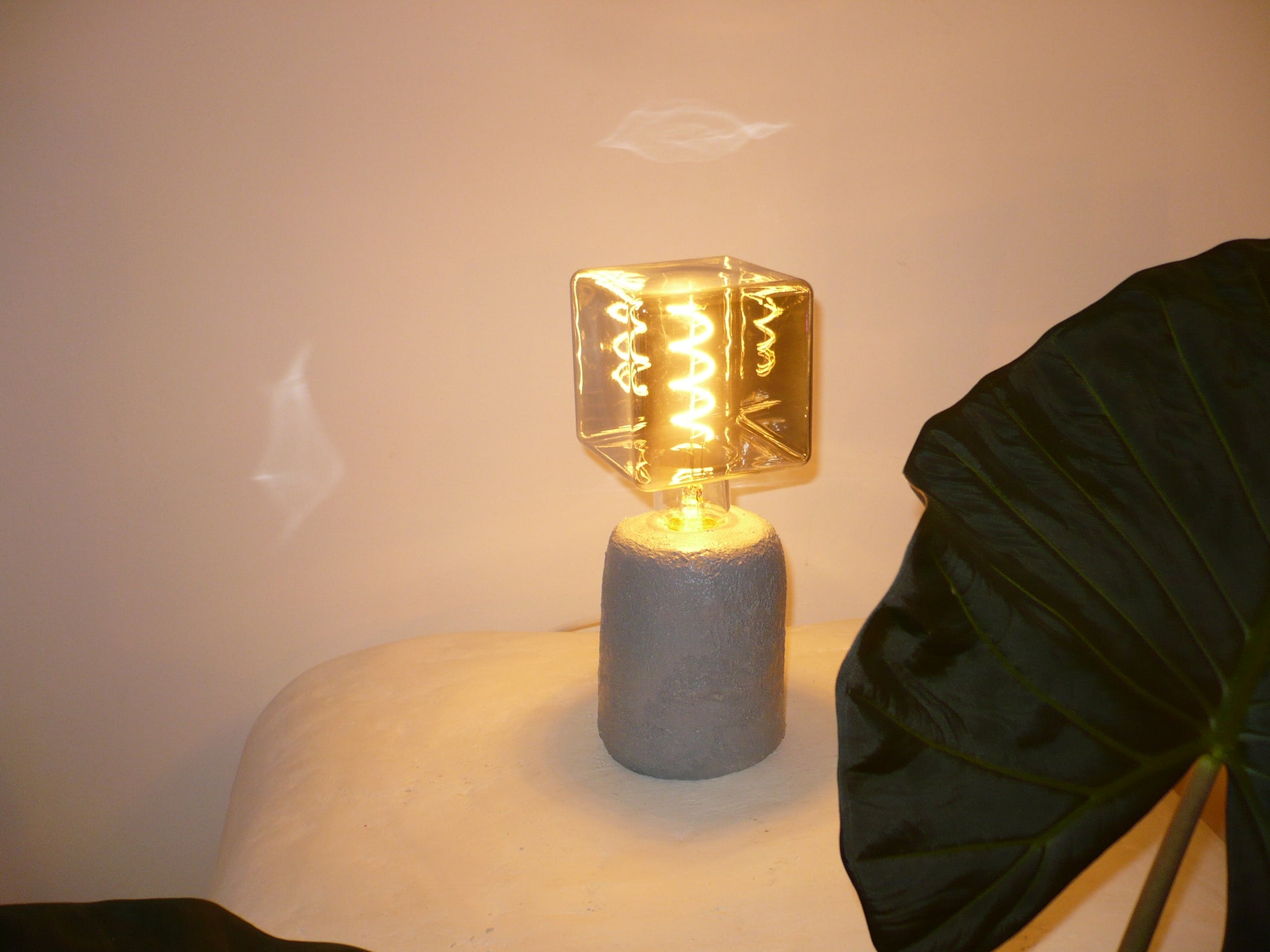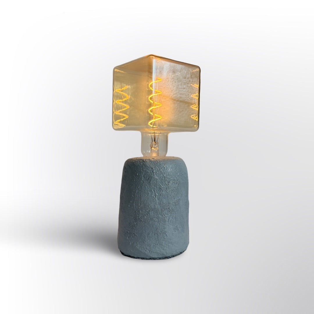 Lámpara minimalista, creada a partir de materiales reciclados. Perfecta para añadir un toque sostenible y moderno a cualquier espacio.